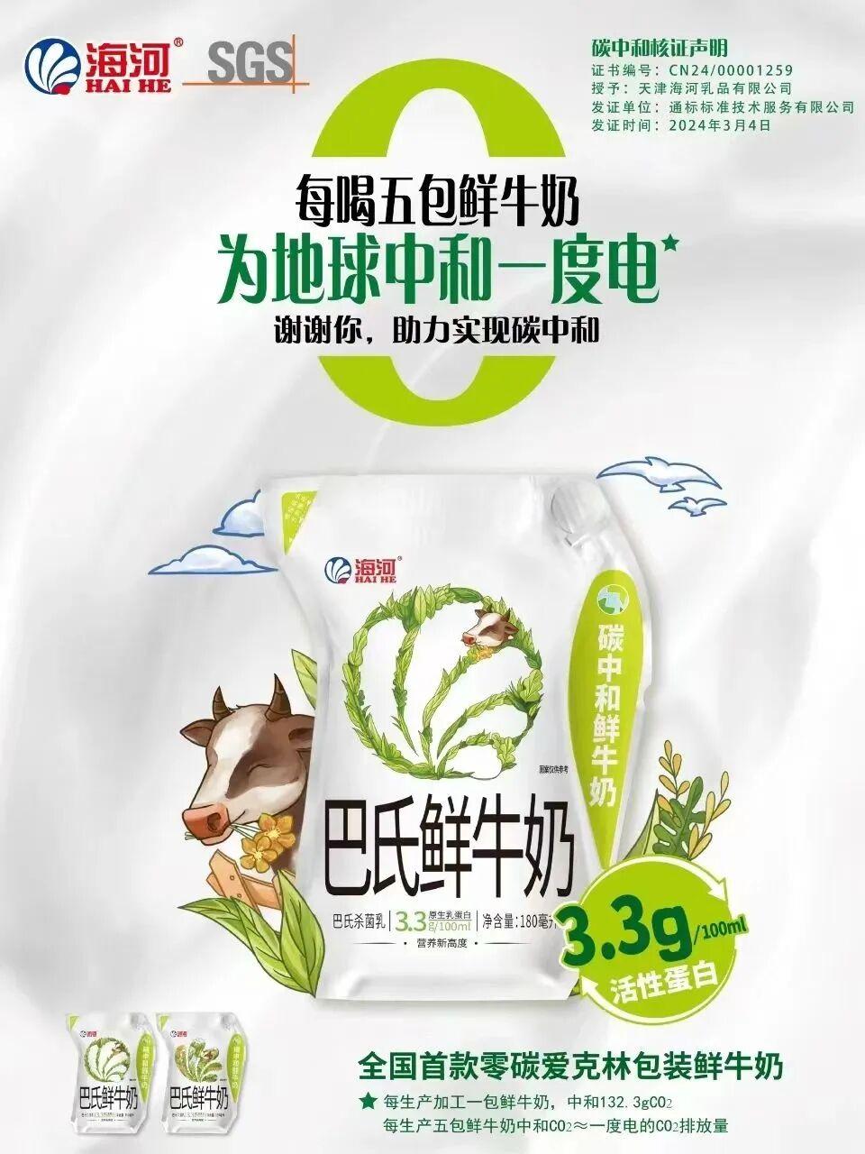 产品全生命周期碳中和典范:海河乳品公司不仅在生产端发力,更将绿色理念延伸至产品本身。在产品包装上,通过采用可回收利用的玻璃瓶包装,以及采用含30%碳酸钙成分的可降解爱克林包装等方式,积极减轻包装残留对环境的负担。2024年,公司成功推出全国首款“碳中和”巴氏鲜牛奶,成为行业绿色产品创新的典范。产品通过对全生命周期碳足迹进行精准核算与管控,最终通过购买碳汇等方式实现碳中和,为消费者提供了真正意义上的绿色消费选择,也为乳制品行业的产品碳足迹管理树立了新标杆。