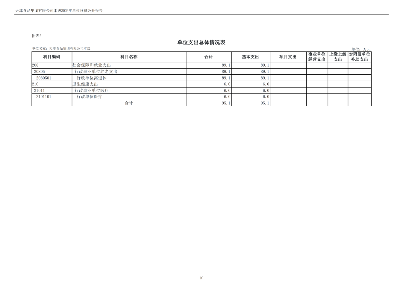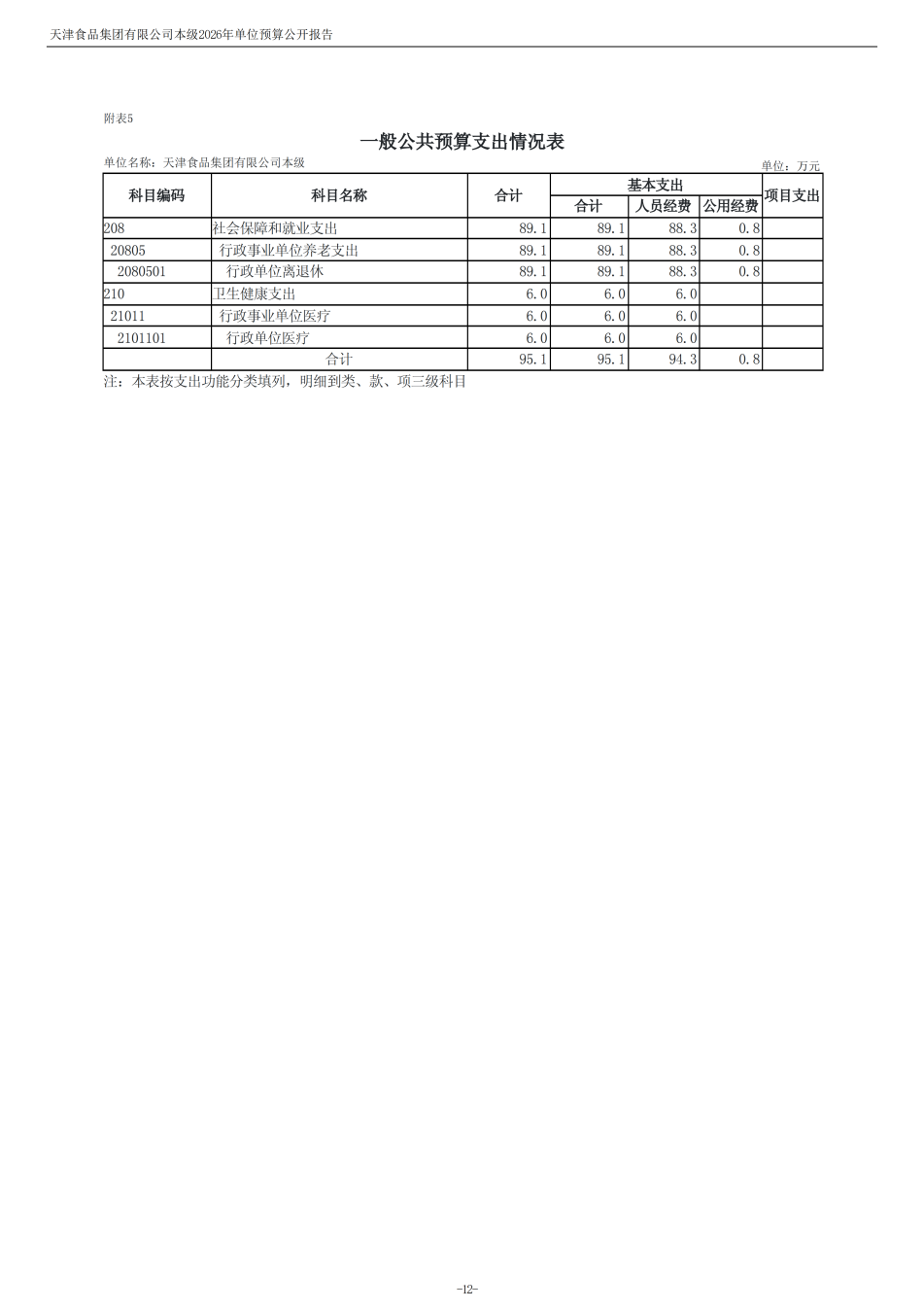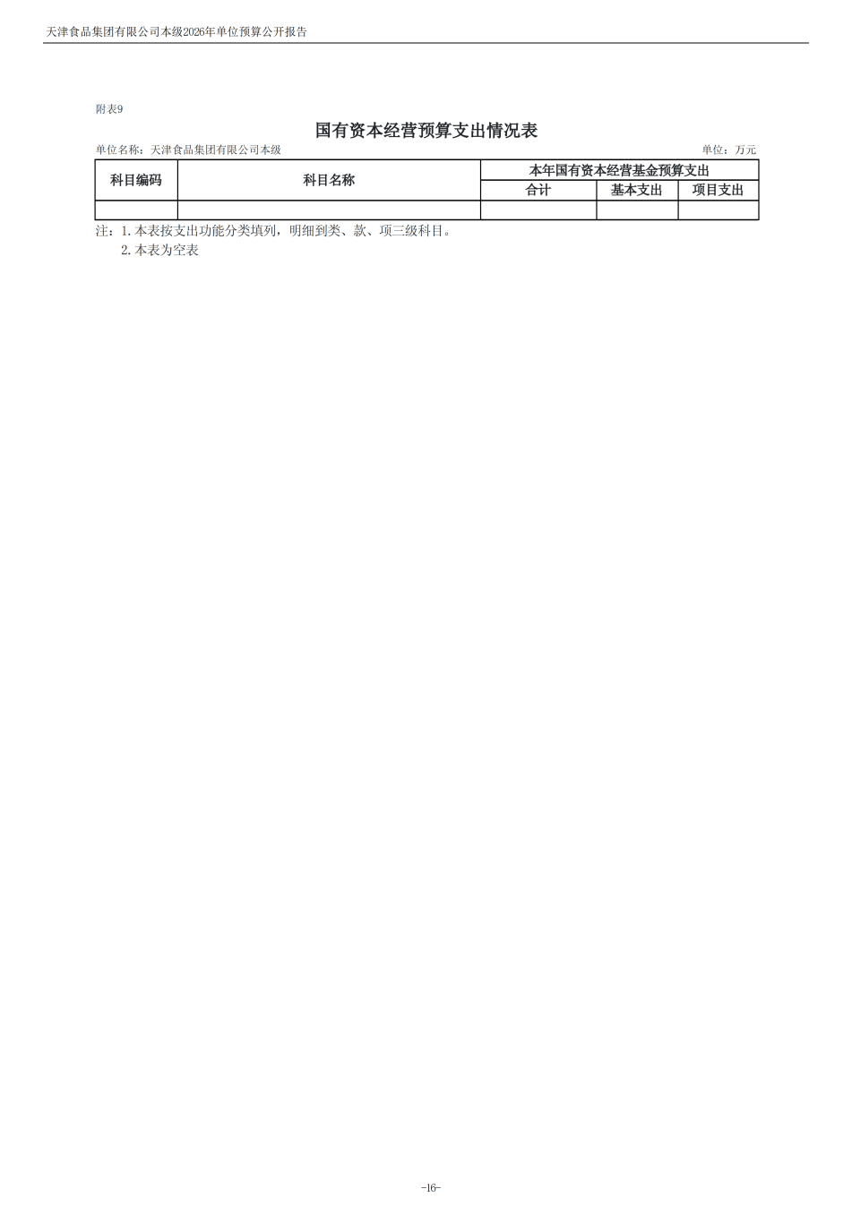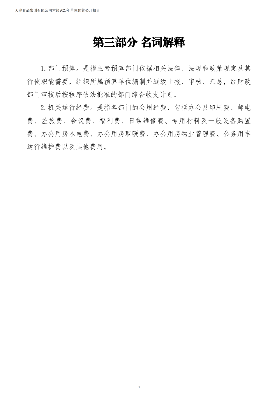 天津食品集团有限公司本级2026年度单位预算